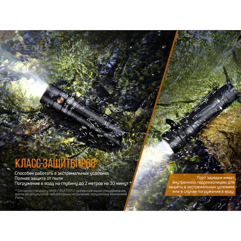 У цій моделі габарити складають 109 x 26,5 x 22,6 міліметра. Важить вона 66 грам, не беручи до уваги вагу елементів живлення. Ударостійкість – один метр, тобто, переносить падіння з метрової висоти без яких-небудь пошкоджень і поломок. Крім того, ліхтар належним чином захищений від попадання всередину води і забруднень. Індекс захисту – IP68.