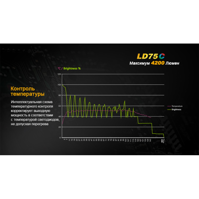 Кажучи про високу надійність ліхтарі Fenix LD75C, необхідно відзначити, що в нього інтегровані механізми захисту від короткого замикання внаслідок встановлення елементів живлення в положенні з неправильною полярністю. Яскравість світла в обраному режимі залишається постійною завдяки роботі контролера постійної напруги. Ліхтар захищений від перегрівання під час роботи в режимах високої потужності. Також роль захисного бар'єру виконує металевий корпус ліхтаря. Він виготовлений з високоякісного авіаційного алюмінію і не схильний до корозії, а також стійке витримує механічні навантаження. Крім того, корпус захищає ліхтар від вологи і тому використовувати Fenix LD75C можна навіть під дощем.