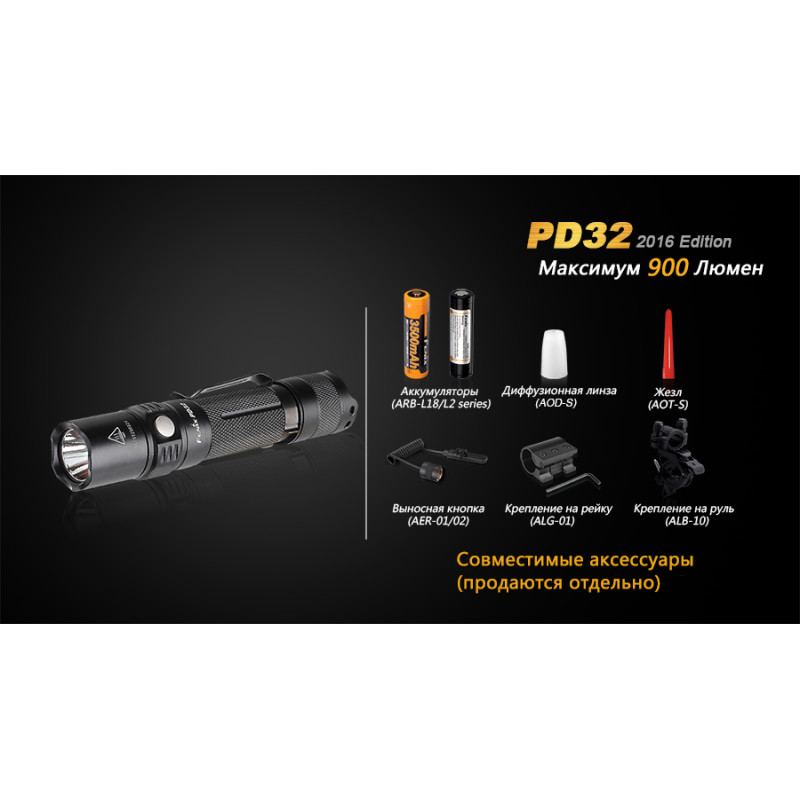 Модель PD32 2016 Edition отримала й інші якості, які дозволяють говорити про високу якість ліхтаря і зручність його експлуатації. Це захищеність від короткого замикання і від перегрівання, стабілізація яскравості на постійному рівні, можливість вносити в пам'ять ліхтаря останній активний рівень яскравості. Ця модель зручна ще й широкої сумісністю з фірмовими аксесуарами, такими як фільтри, тактичні кнопки, кріплення для велосипеда або ж мисливської зброї.