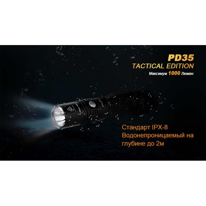 Корпус ліхтаря Fenix PD35 TAC виготовлений з урахуванням тактичного використання моделі. Матеріалом для нього служить міцний анодований алюміній, здатний захистити внутрішні деталі ліхтаря від віддачі після пострілу або пошкоджень в результаті падіння на камені з висоти близько 2 м. Корпус абсолютно водонепроникний, що дає можливість використовувати Fenix PD35 TAC під дощем і мити ліхтар в струмку. Навіть після 30 хвилин роботи під водою (на глибині близько 2 м) Fenix PD35 TAC продовжить так само справно працювати.