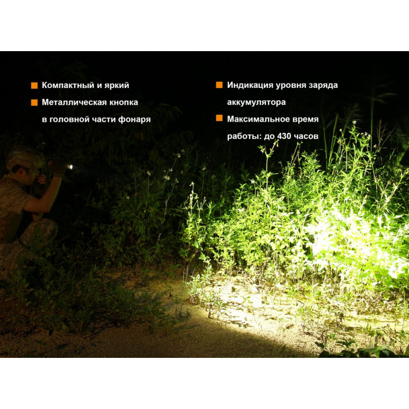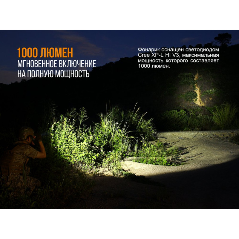 | Комплектація | Ліхтар, чохол, ремінець на руку, 2 ущільнювальних кільця, запасна гумова накладка на кнопку, інструкція, гарантія | |||||