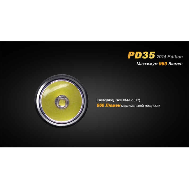 Новий світлодіод CREE XM-L2, який встановлений в PD35 економічніше аналогічних моделей на 20%, що добре впливає на тривалість роботи ліхтаря без підзарядки. Плюс до всього, зросла максимальна потужність до 960 люмен. Також порадує холодно-білий світло діода, який набагато ефективніше нейтральних відтінків.