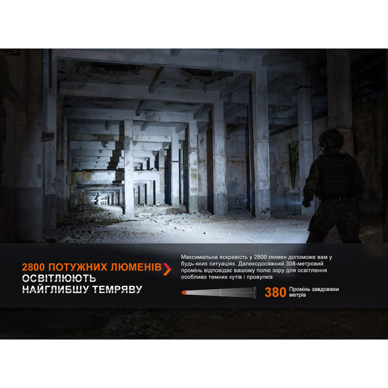 - Турбо: 2800 лм – 380 м – 3 год. 30 хв.