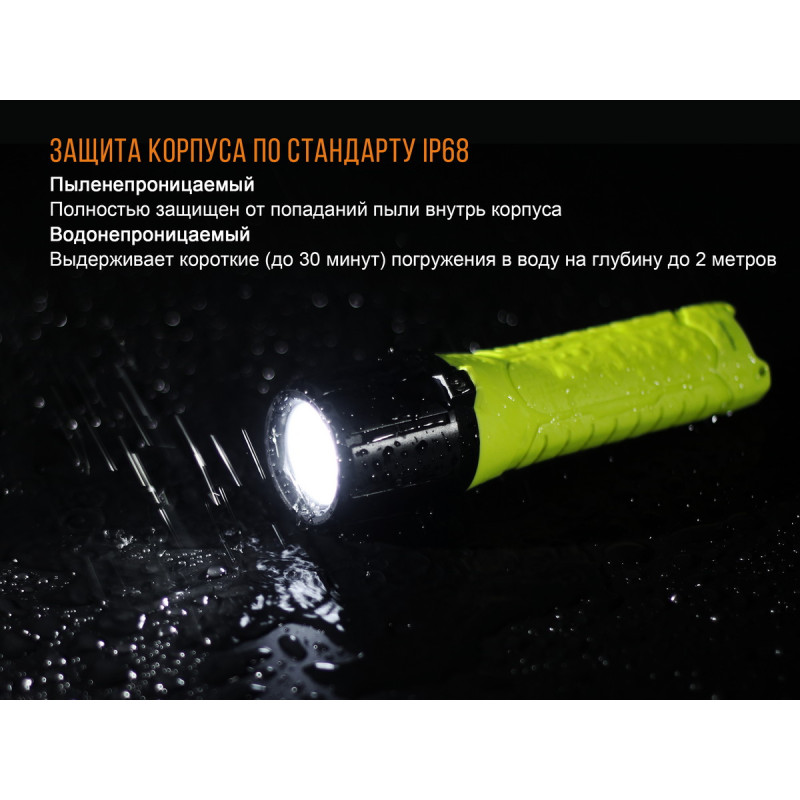 Корпус даного ліхтаря особливо ретельно ізольований від попадання всередину будь-яких речовин, у тому числі, повітря. Для його виготовлення використовується особлива різновид пластику, стійкого до перепадів температур і повністю антистатичного. Батарейний відсік теж відкривається не так-то просто. Для цього необхідно застосувати ключ шестигранний, який продається в одному наборі з ліхтарем.