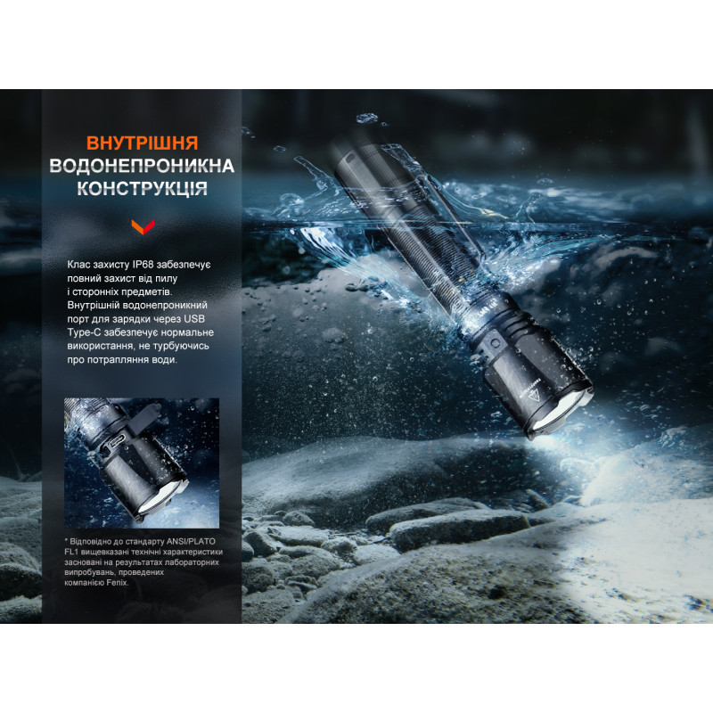 Ручний ліхтар Fenix TK11R, фірмовий акумулятор (3400 мАгод) + зарядний кабель USB Type-C, знімна кліпса, темляк, чохол, запасне ущільнювальне кільце, гарантія, інструкція.