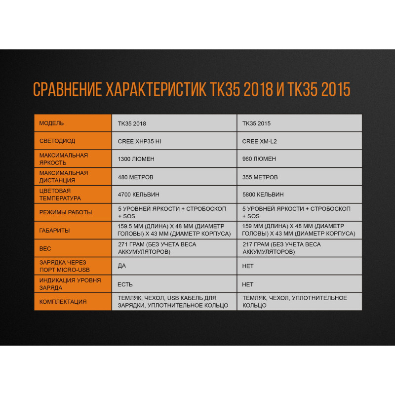 Опис ліхтарі Fenix TK35 (2018) Cree XHP35 HI:
