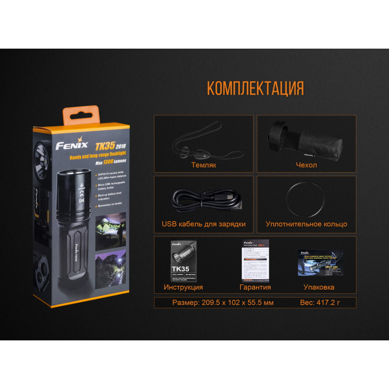 Модель Fenix TK35 (2018) стане прекрасним доповненням до спорядження туриста, рибалки та мисливця. Його яскравий світлодіод Cree XHP35 HI здатний створювати промінь світла з максимальною яскравістю на рівні 1300 люмен і дальністю до 480 метрів. А інтегрований термоконтроллер і продумана система охолодження не дадуть ліхтаря перегрітися навіть при тривалій експлуатації в жарку погоду.