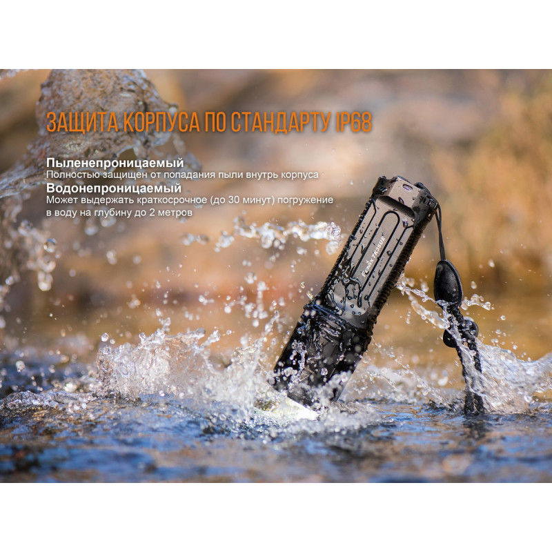 | Комплектація | ліхтар, чохол, темляк, кабель для зарядки через USB, додаткове кільце ущільнювальне | |||||||