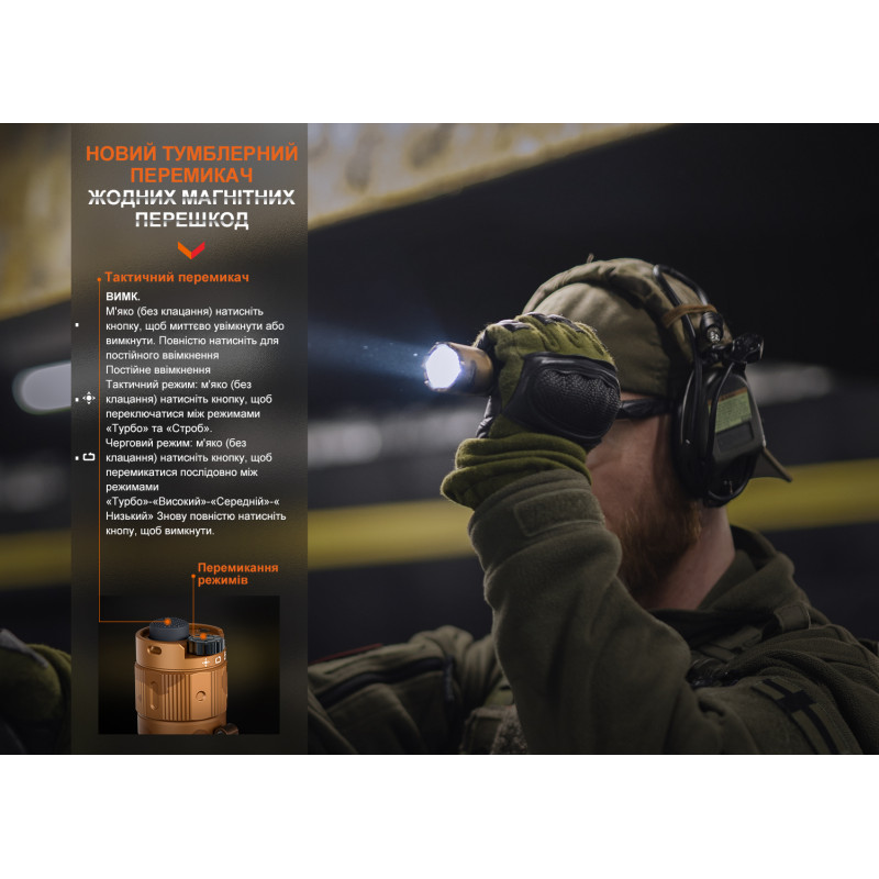 Працівники правоохоронних органів та військовослужбовці потребують особливих освітлювальних пристроїв, що здатні витримувати високі навантаження і при цьому якісно освітлювати великі відстані. Спеціально для цієї категорії користувачів бренд Fenix розробив ліхтар TK20R UE — компактну модель яскравістю до 2800 люмен у разі роботи в режимі Турбо.