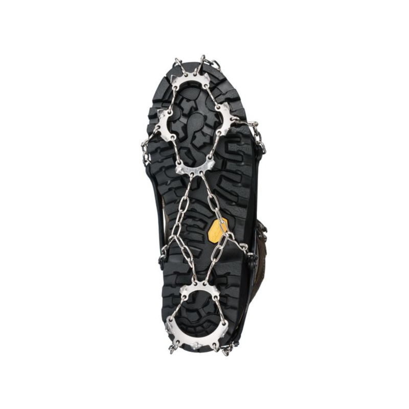 Состоит из двух частей - эластичной резиновой и металлической шипованной части и крепится прямо на ботинки буквально за несколько секунд. Благодаря ледоступам вы будете чувствовать себя безопасно и уверенно в любых условиях.