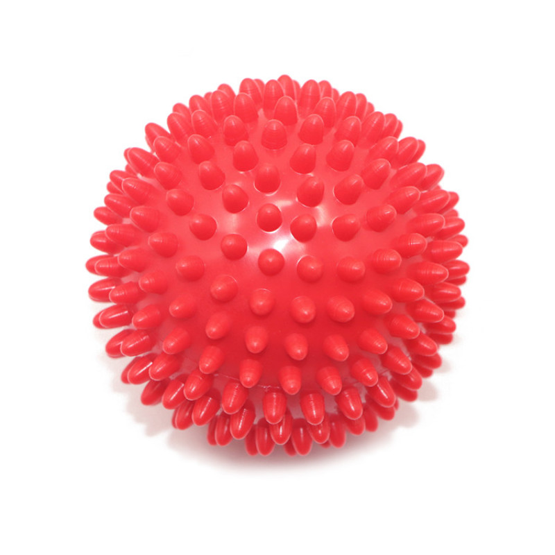 Массажер выполнен в виде небольшого мячика с неострыми выступами по всей поверхности. Он отлит из качественной резины, она нетоксична, не имеет неприятного запаха, легко моется. Яркий цвет поможет найти массажер даже если он закатится под диван. Благодаря оптимальному диаметру его удобно держать в руках, а небольшой вес позволит рукам оставаться в тонусе на протяжении всего массажа.