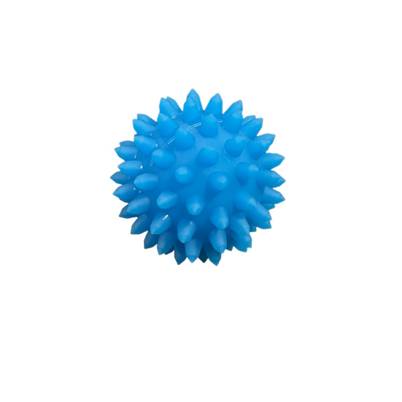 Массажер выполнен в виде небольшого мячика с неострыми выступами по всей поверхности. Он отлит из качественной резины, она нетоксична, не имеет неприятного запаха, легко моется. Яркий цвет поможет найти массажер даже если он закатится под диван. Благодаря оптимальному диаметру его удобно держать в руках, а небольшой вес позволит рукам оставаться в тонусе на протяжении всего массажа.