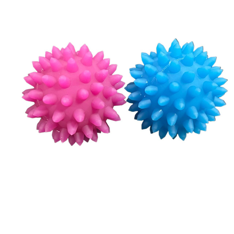 Массажер выполнен в виде небольшого мячика с неострыми выступами по всей поверхности. Он отлит из качественной резины, она нетоксична, не имеет неприятного запаха, легко моется. Яркий цвет поможет найти массажер даже если он закатится под диван. Благодаря оптимальному диаметру его удобно держать в руках, а небольшой вес позволит рукам оставаться в тонусе на протяжении всего массажа.