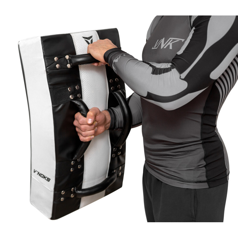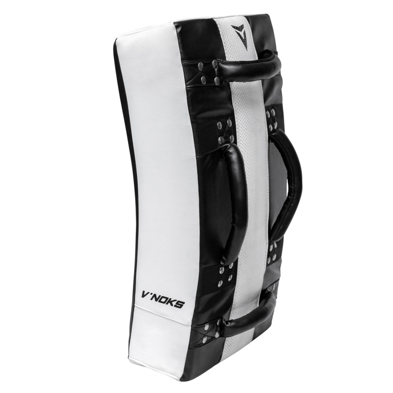 Маківара V`Noks Aria White виконана з натуральної шкіри Nappa, що гарантує тривалу службу та стійкість до зовнішніх пошкоджень при інтенсивному використанні. Даний інвентар витримає відпрацювання навіть найсильніших ударів ногами та руками. Завдяки спеціальному пінно-гелевому наповнювачу максимально гаситься сила удару. При цьому маківара V`Noks Aria White має ультралегку вагу, яка забезпечує максимальний комфорт та зручність для рук тренера, а вигнута форма дає анатомічно правильну позицію рук та найкраще поглинання ударів.