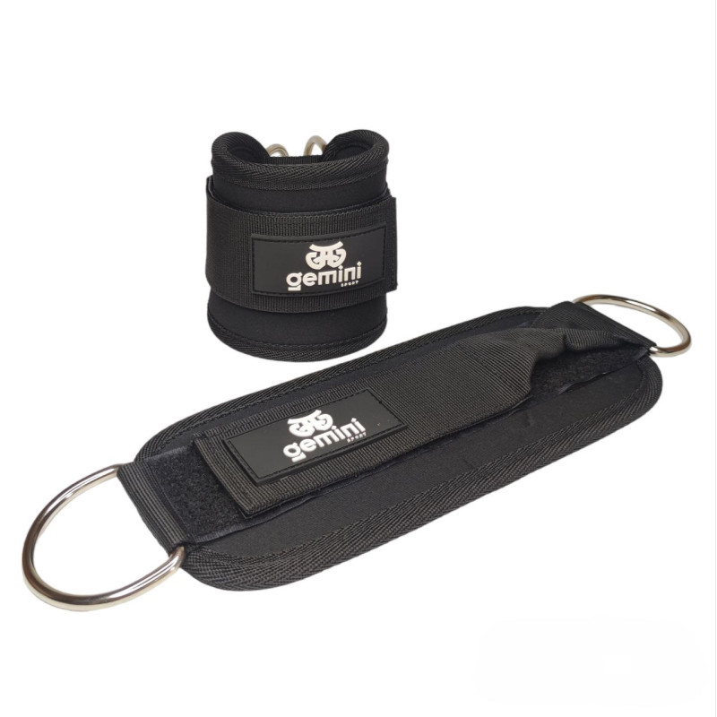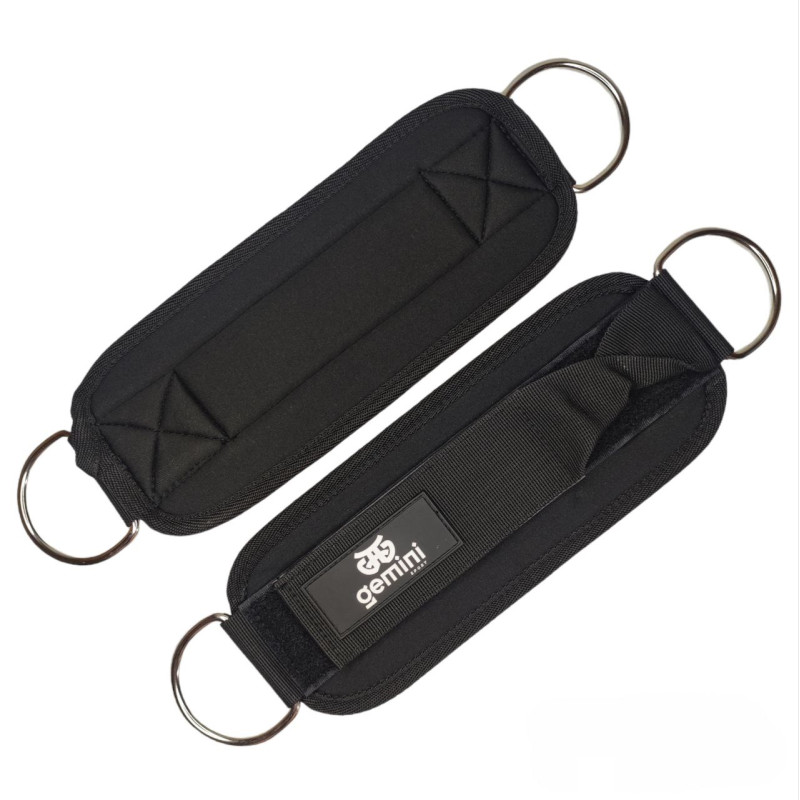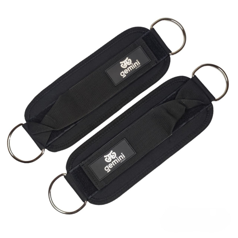 Манжеты для тяги от украинского бренда Gemini sport используются для работы с блочными тренажерами в фитнес-клубах, а также для домашнего применения в сочетании со спортивными жгутами и эспандерами. Предназначены для увеличения эффективности упражнений на ноги, бедра и ягодицы.