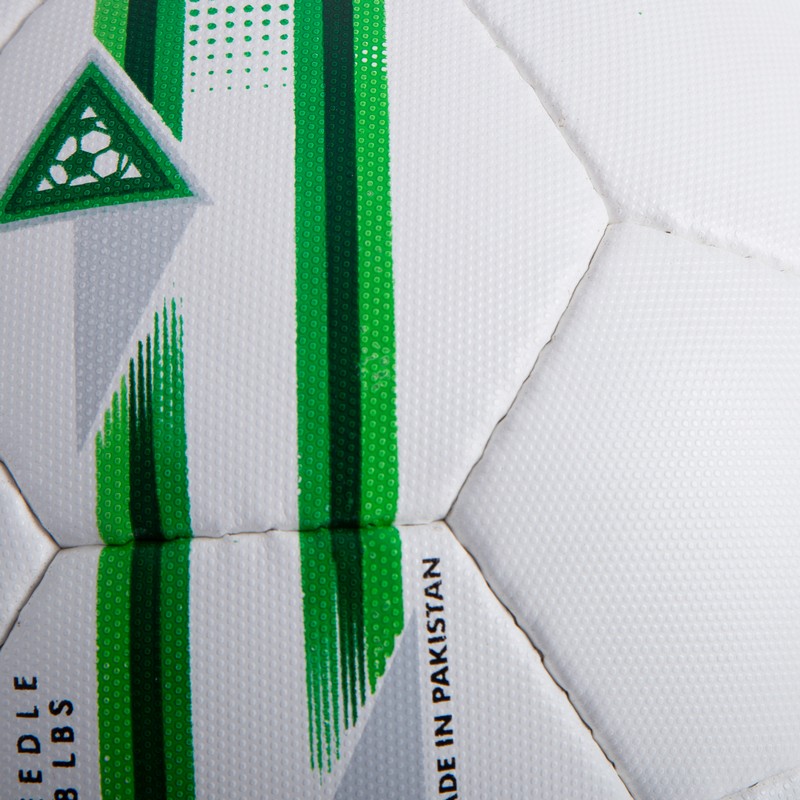 Для изготовления мяча используются материалы высшего качества. Покрышка сшита вручную из прочного, устойчивого к износу и механическим повреждениям полиуретана. Камера изготовлена из латекса – упругого, эластичного материала, который отлично удерживает воздух, благодаря чему мяч длительное время остаётся накачанным. Чтобы он как можно дольше сохранял правильную сферическую форму, а также имел качественный отскок, между камерой и покрышкой помещена подкладка, состоящая из 4 слоёв полиэстера. Для накачивания мяча подходят стандартные иглы.