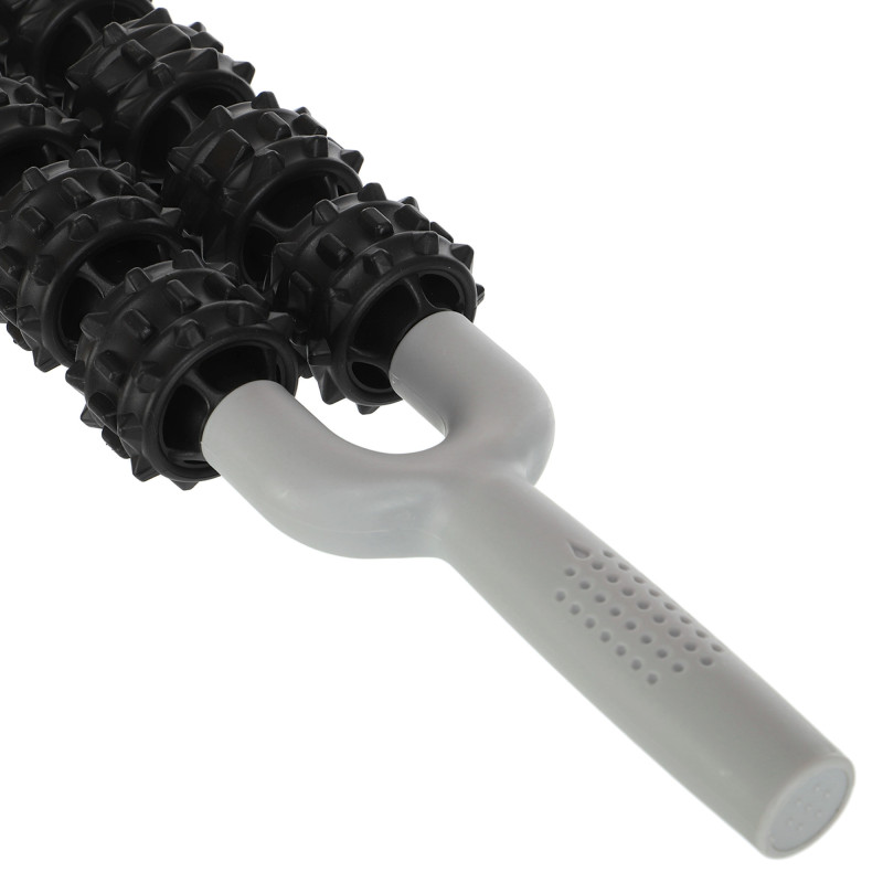 В конструкции массажной палки предусмотрено 10 роликов. Рельефная поверхность роликов способствует более эффективному массажу мышц.