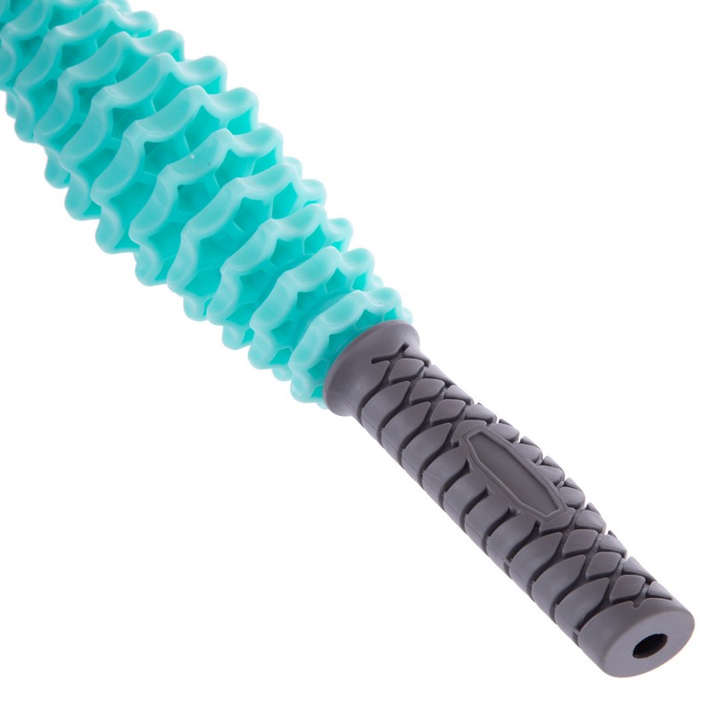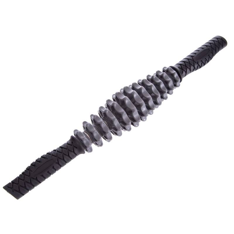 Массажер-палка представляет собой удобный и функциональный инструмент, оснащенный 12 роликами, форма которых напоминает зубцы шестеренок. Эта особенность позволяет равномерно распределять нагрузку и эффективно прорабатывать даже глубокие мышцы. Разная величина роликов обеспечивает плавное воздействие – от более мощного к мягкому, что делает массаж комфортным и результативным.