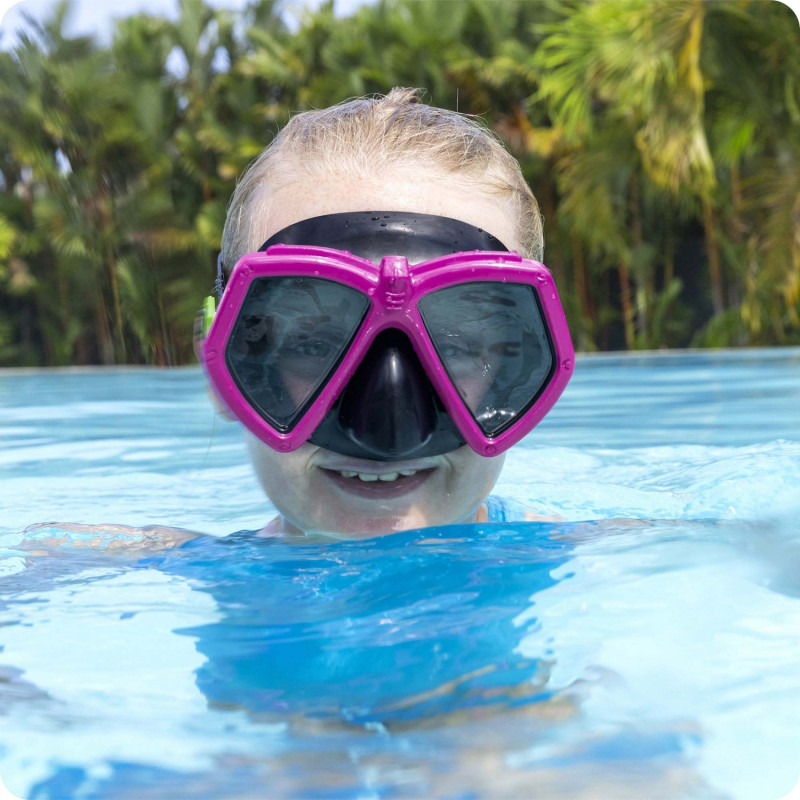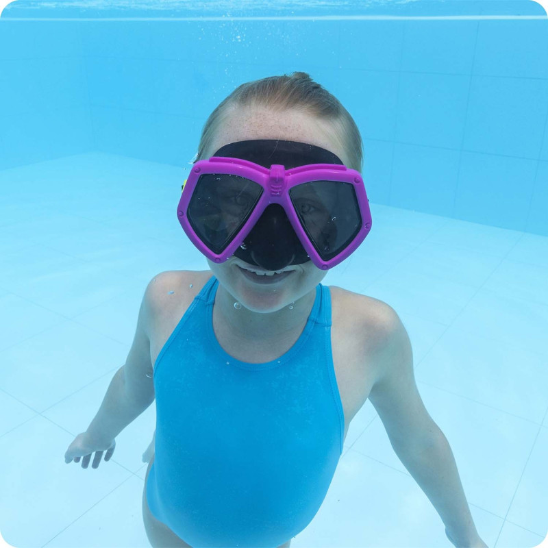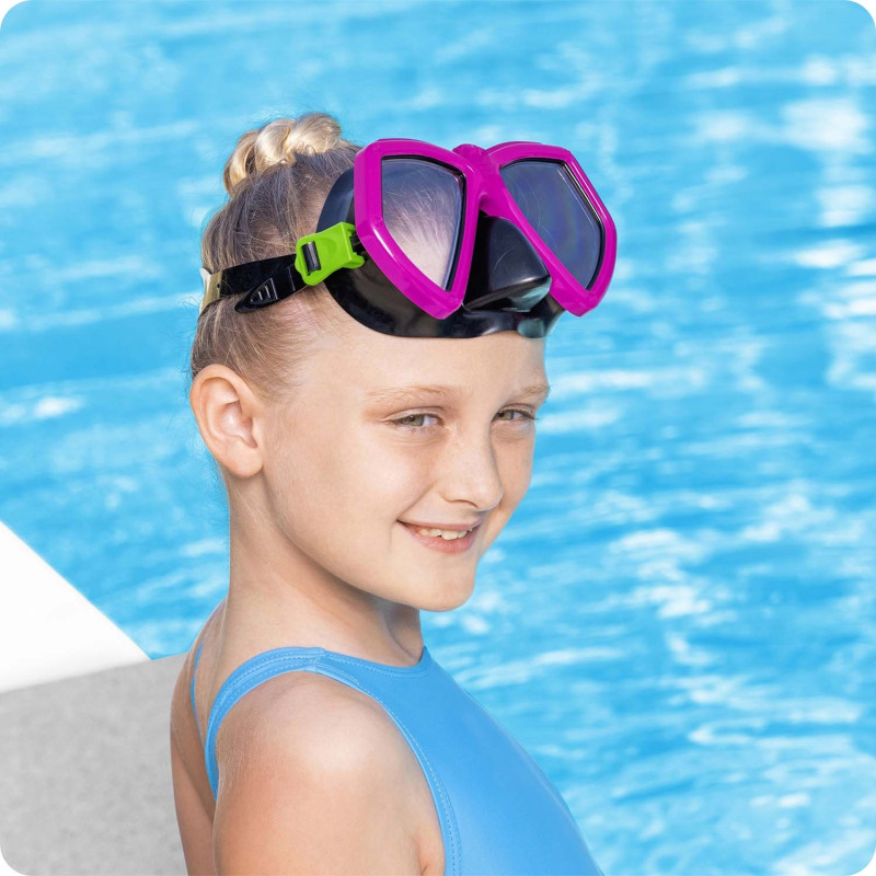 Літо бризок вже не за горами, і найкращий аксесуар для нього - маска Bestway® Dominator™! Ідеально підходить для плавання в басейні або занурення в океан, ця маска чудово підходить для дітей віком від 7 років.