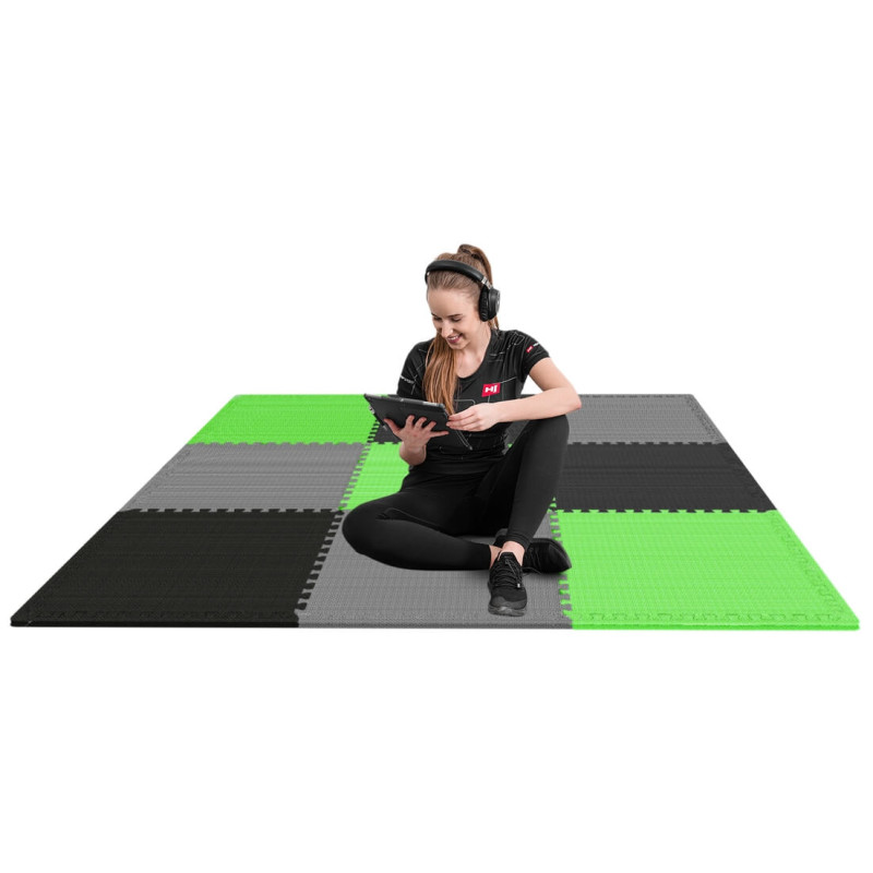 Коврик-пазл EVA HS-A010PM черный/серый/зеленый - универсальный продукт, гарантирующий защиту пола во время домашних тренировок!