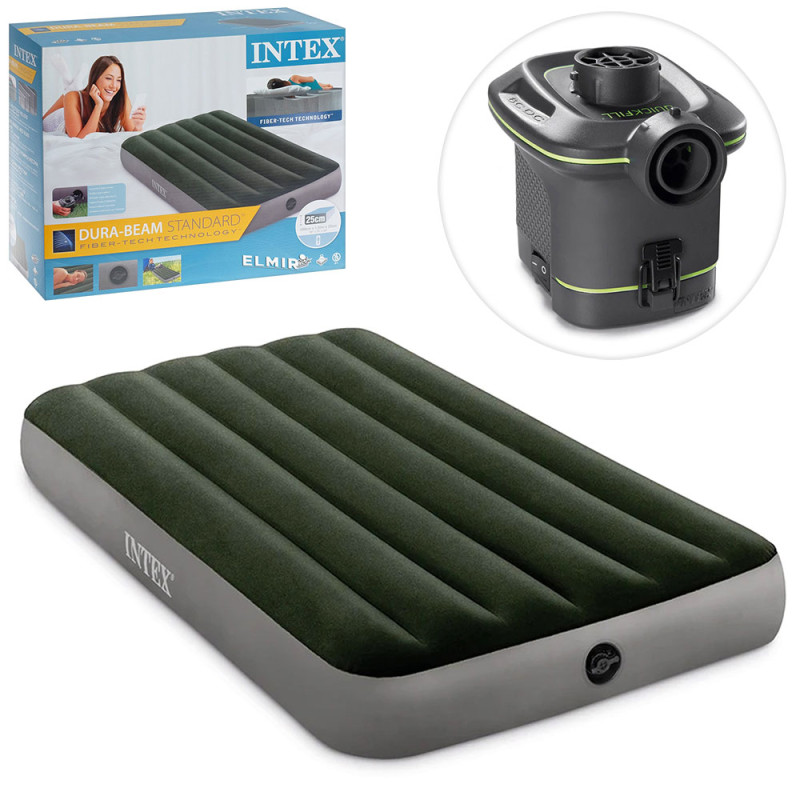 Отличие от матараса Intex 64107 - данный матрас 64777 укомплектован наружным насосом Intex 66638,, работающий от батареек. Матрас можно накачивать любым насосом Intex или Bestway