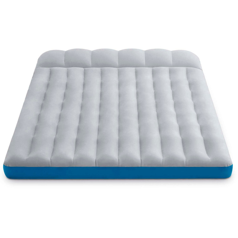 Класичний надувний матрац з підголовником Intex 67999 - це відмінний варіант для використання в квартирах невеликої площі, на дачі, в поїздках до озера або моря, а також при тривалих туристичних походах. Цей виріб стане чудовою альтернативою стандартного ліжка, а завдяки компактним розмірам в здутому стані матрац завжди можна брати з собою і не виникне складнощів з його зберіганням. Завдяки стильному виконанню він буде гармонійно виглядати в будь-якому місці установки. Цей матрац виготовлений з міцного водонепроникного вінілу, а верхня частина має приємне на дотик флоковане покриття, що нагадує велюр, яке перешкоджає ковзанню постільної білизни і легко чиститься без застосування спеціальних миючих засобів. Невеликі розміри в складеному вигляді дадуть можливість використовувати Intex 67999 не тільки вдома, але і взяти з собою, наприклад, на дачу або в похід. Конструкція з поздовжніми перегородками витримує великі навантаження і дозволить тілу прийняти правильне положення.
