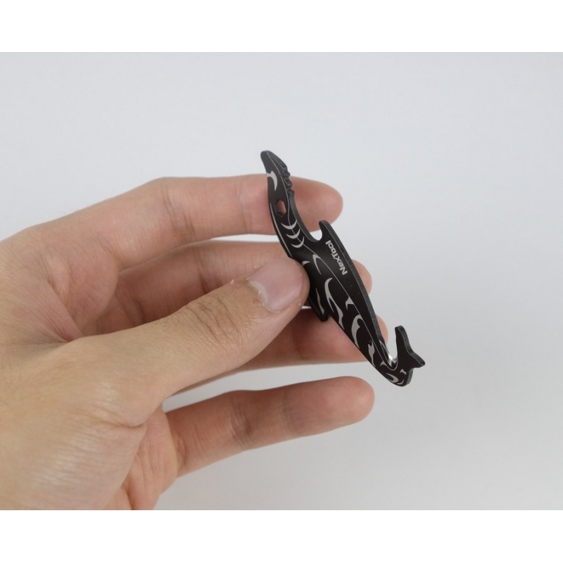 Любителям мінімалізму присвячується. Витончений мультитул, виготовлений з нержавіючої сталі марки 2Cr13, з відмінними ріжучими властивостями. Може вікорістовуватіся в якості ножика, відкривачки для пляшок, замість ножиць. Вам потрібно розкрити коробку, або перерізати мотузку, або відкоркувати тару, а бути може, підпиляти що-небудь – модель KT5521 до послуг користувача. Надійний, безпечний і продуманий мульті інструмент. Цікавий анімалістичний дизайн – форма у вигляді силуету підводного хижака, агресивною, але чарівною, акули. Запросто прикрасити ваші ключі, сумку, чохол для техніки або будь-який інший предмет. Підходить для щоденного застосування.
