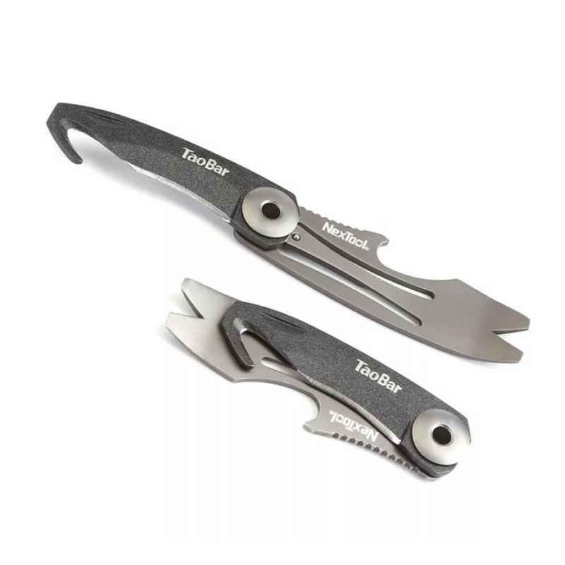 Знаменита торгівельна марка NexTool заслужила симпатію споживачів своїми багатофункціональними і нестандартними виробами. Ці легкі пристосування дуже радують шанувальників туризму і активного способу життя. Моделі досить міцні і надійні, стійкі до зношування і іржі, при цьому вони володіють цікавим незвичайним дизайном. З такими мультитулами вирушають на риболовлю, полювання, вилазку, йдуть у похід, подорожують. У будь-якій ситуації маленькі супутники виручають свого власника і полегшують побутові завдання. Одним з таких екземплярів є KT5016 TaoBar. Це досить збалансована ножова сталь, яка відрізняється одночасно прекрасною заточкою, високою міцністю і захистом від корозії. Примірник з такого матеріалу прослужити довго і ефективно. Лезо мультитула має антипригарне тефлонове покриття, яке забезпечує чистоту і простоту використання. Ручка мультитула має титановим покриттям, зроблена з міцної сталі 2Cr13,захищеної від корозії. Основні цільові призначення – різання, розкриття упаковок, відкручування цвяхів, відкривання пляшок. Багатофункціональний ніж повноцінно справляється з багатьма найбільш частими побутовими завданнями. Пакети він розкриває швидко і безпечно, не пошкоджуючи продуктів всередині, все завдяки унікальному різального гачка. У виробі передбачені функції ножа, щипців, викрутки, ножиць. Використовувати даний мультитул можна як вдома, так і на відпочинку, він скрізь знаходить застосування. Гарантія на даний екземпляр – 1 рік, офіційно від виробника