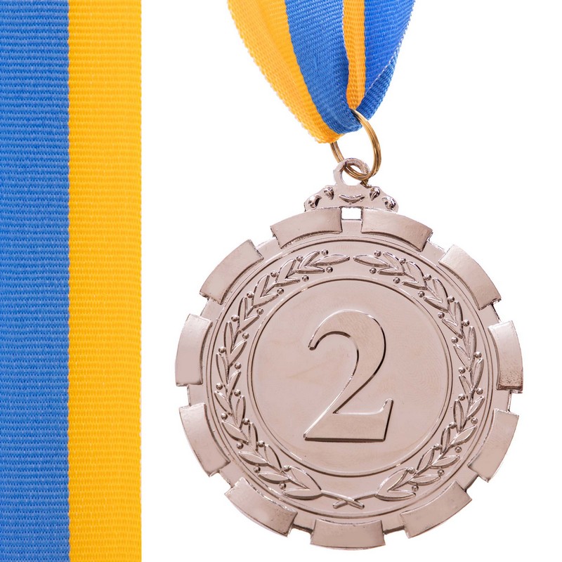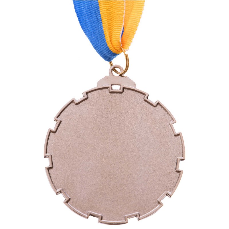 Универсальная спортивная медаль изготовлена из металла. Ее диаметр составляет 6,5 см. Весит награда 38 г. Она комплектуется лентой в цветах флага Украины.
