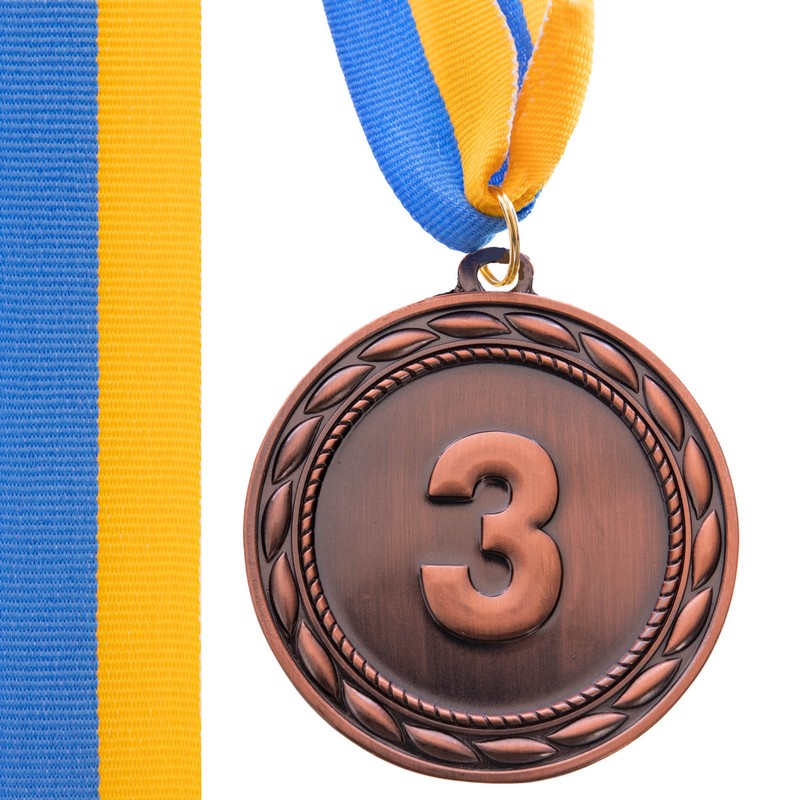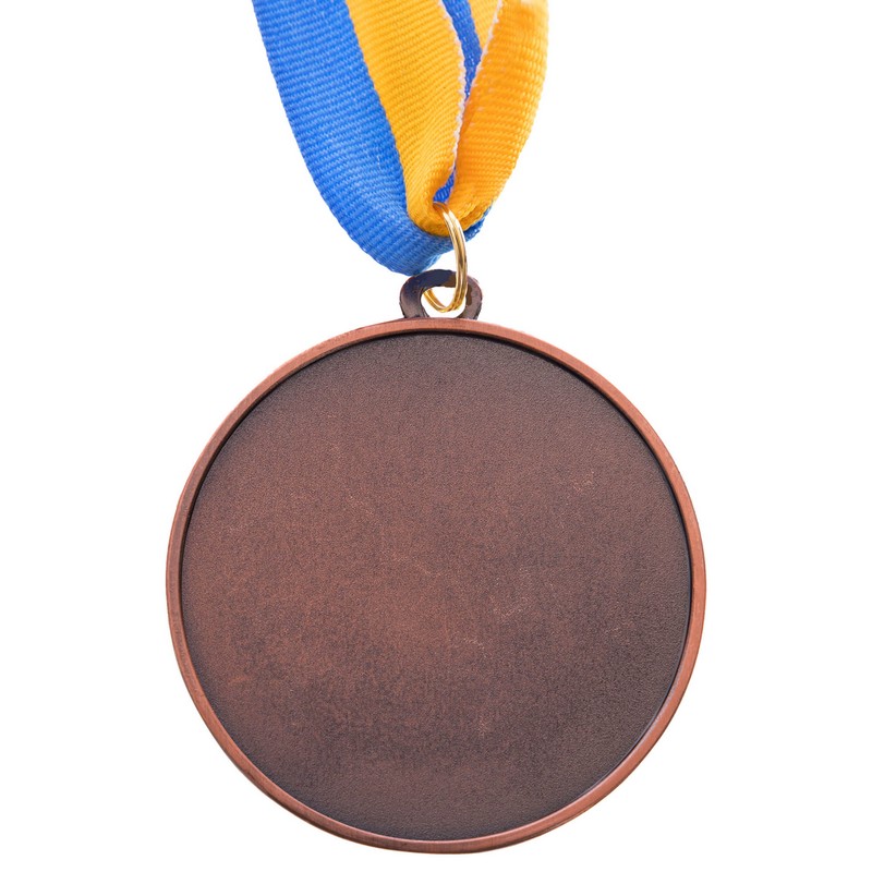Универсальная спортивная медаль изготовлена из металла. Ее диаметр составляет 6,5 см. Весит награда 38 г. Она комплектуется лентой в цветах флага Украины.