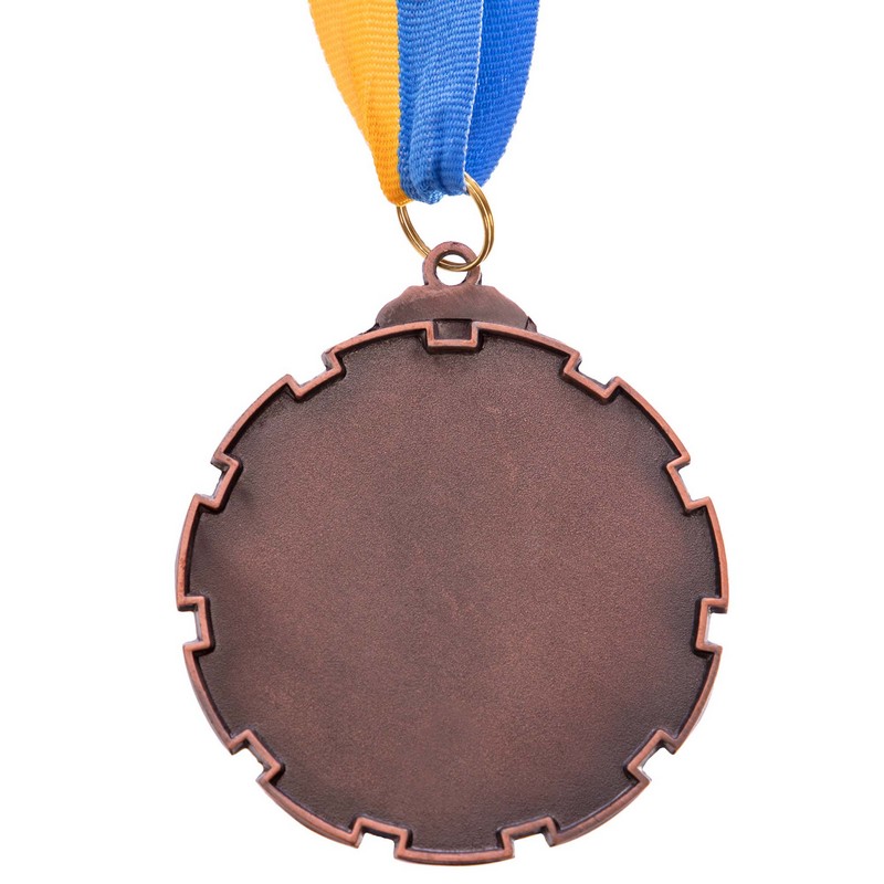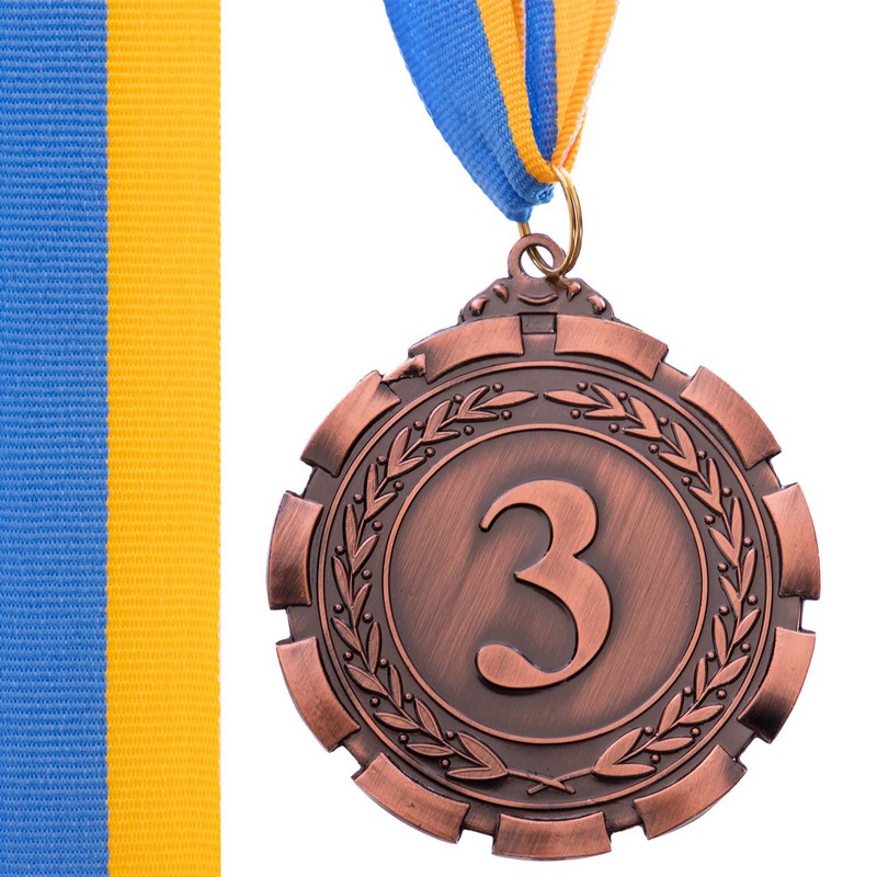 Универсальная спортивная медаль изготовлена из металла. Ее диаметр составляет 6,5 см. Весит награда 38 г. Она комплектуется лентой в цветах флага Украины.