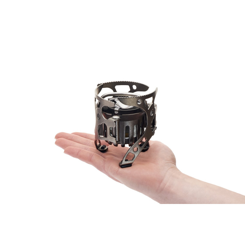 Компактні габарити та легка вага є перевагами даної моделі. Вона поміститься на долоні. Пальник здатний витримувати 80-кілограмову вагу. Саме пристрій важить 501 грам. Розміри становлять 18*14*9 сантиметрів.