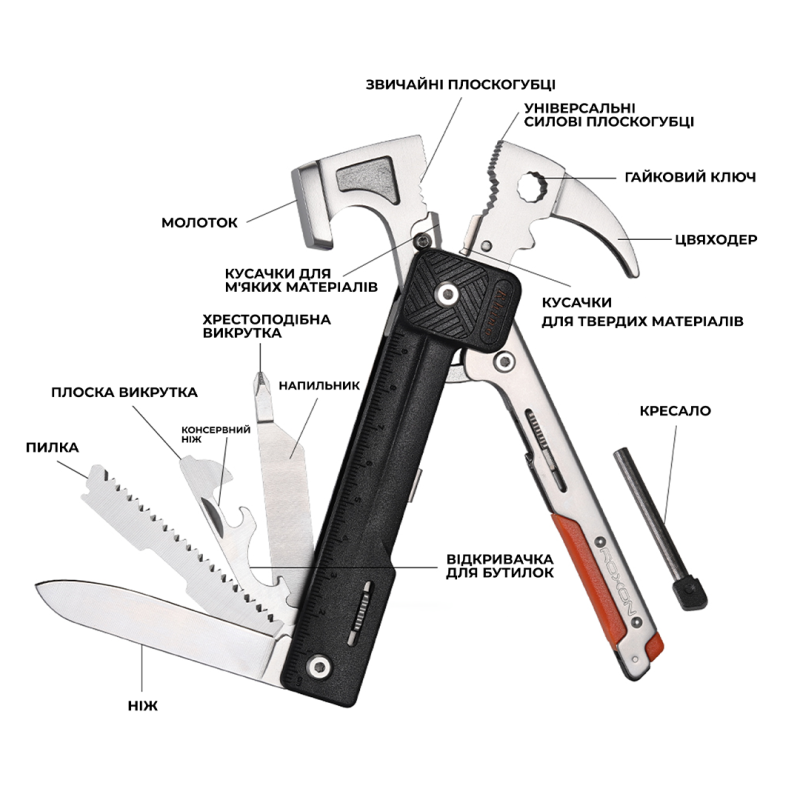 Мультитул H1 від Roxon - це перша функціональна модель бренду з основним інструментом у вигляді молотка. Аксесуар стане в пригоді у побуті, в ремонтних роботах в гаражі або в професійних цілях, коли є необхідність у великій кількості інструментів, але немає можливості носити з собою повноцінний набір із великою вагою.