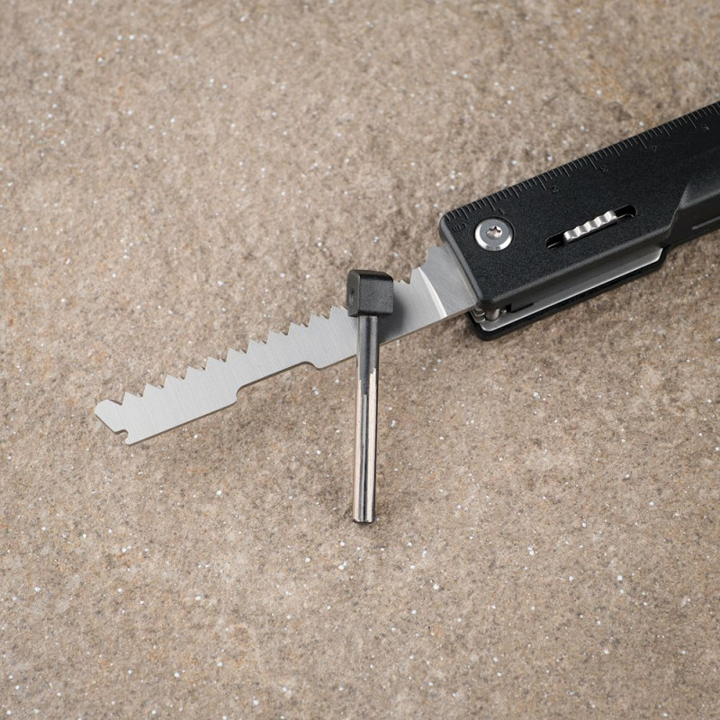 У висувній рукоятці приховано ще один невеликий аксесуар - магнієве кресало. На відміну від фероцерієвих аналогів, це кресало не вимагає трута для розпалювання вогню і підходить для застосування у будь-яку погоду.