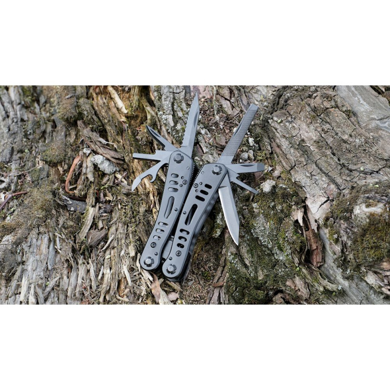 Хоча мультитул і зроблений з нержавіючої сталі, на інструменти нанесено стійке чорне покриття, яке відіграє роль додаткового бар'єр єру для корозії. До того ж, завдяки цьому покриттю, мультитул — матовий і виглядає дуже стильно.