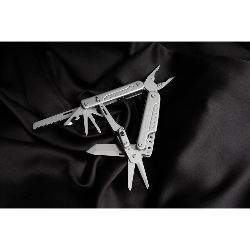 Відкривати інструменти можна буквально однією рукою, швидко і зручно. За один рух можна витягти і відразу застосувати 7 часто використовуваних функцій, і зробити це легко, навіть будучи в рукавицях. Ножиці моделі досить великі і безпечні, з ними досить просто працювати, і можна перерізати досить товсті мотузки або канати. Рукоять у ножиць має замок-перемикач для стійкої роботи інструментом. Форма леза ножа в мультитулі – Tanto, ніж потребує придбання додатково різних ліз. Можна виконувати найрізноманітніші роботи, використовуючи для них тієї чи інший тип клинка, і оптимізуючи тим самим процес.