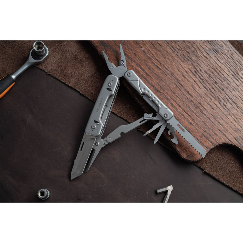 Модель мультитула Roxon Phantom S802 нагадує вже знайомий мульті інструмент Storm S801S. Компактні розміри, надзвичайно зручне використання, багатофункціональність і ефективність. Модель розроблена за принципом класичного мультиинструмента, основні пристосування – плоскогубці. Тут 15 функцій для виконання різних видів робіт на практиці.