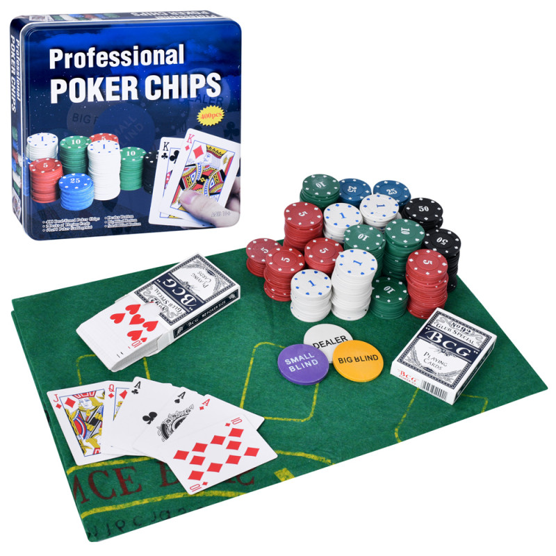 Комплектация набора: 400 фишек, 2 колоды карт, полотно.