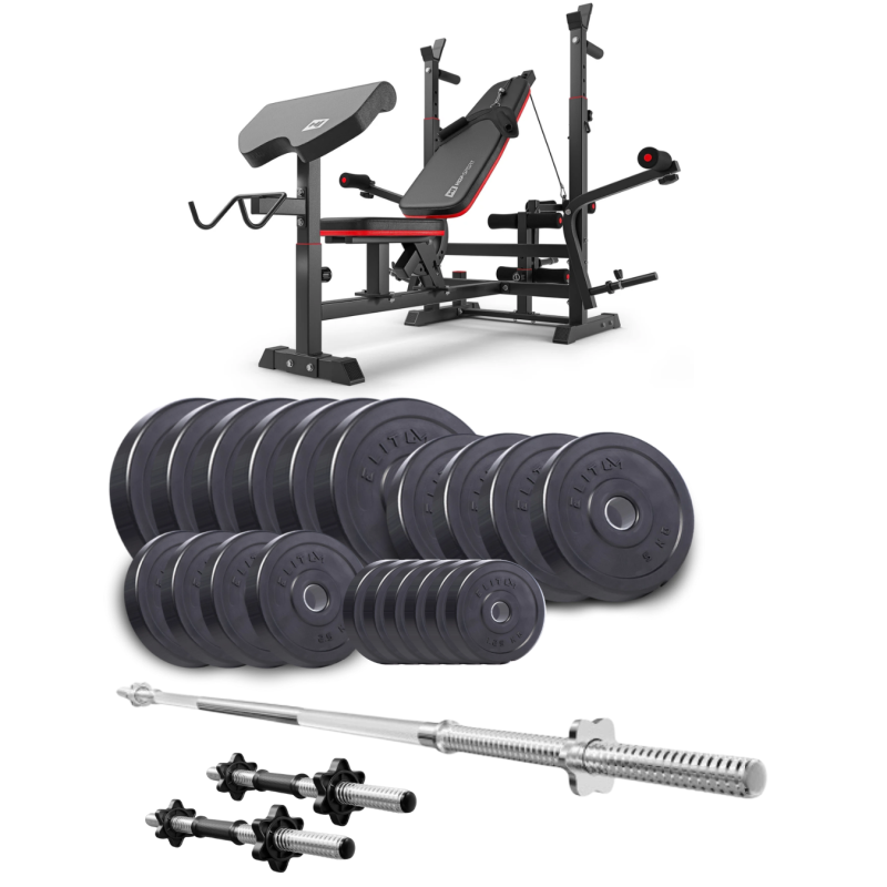 Набор Elitum Titan 109кг со скамьей HS-1075 Pro, штангой и гантелями