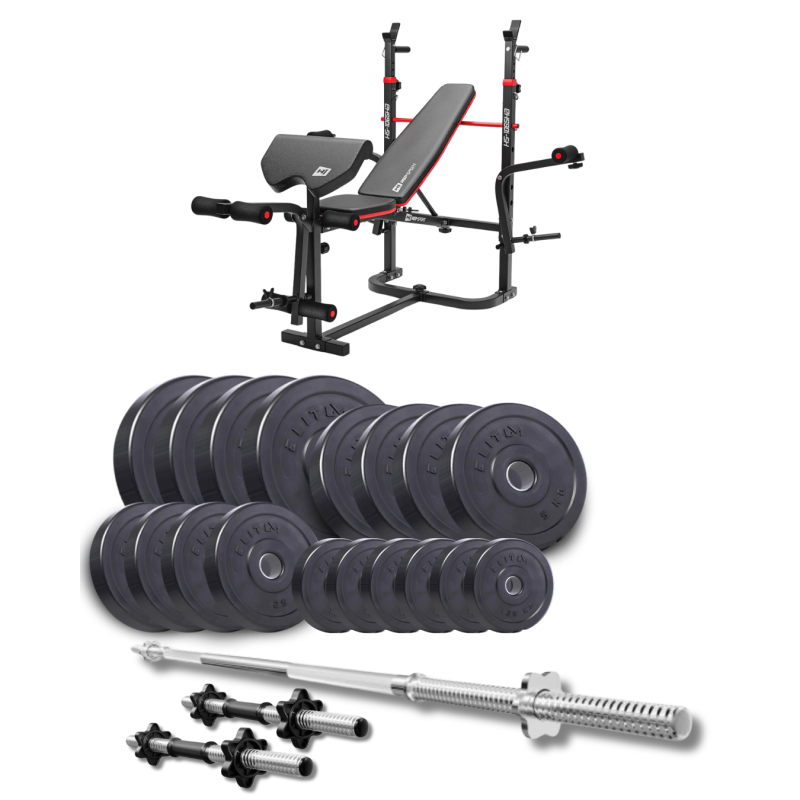 Набор Elitum Titan 89кг со скамьей HS-1065HB Pro, штангой и гантелями