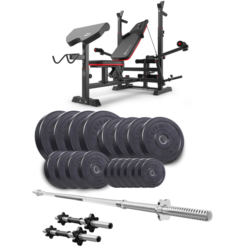 Набор Elitum Titan 89кг со скамьей HS-1075 Pro, штангой и гантелями