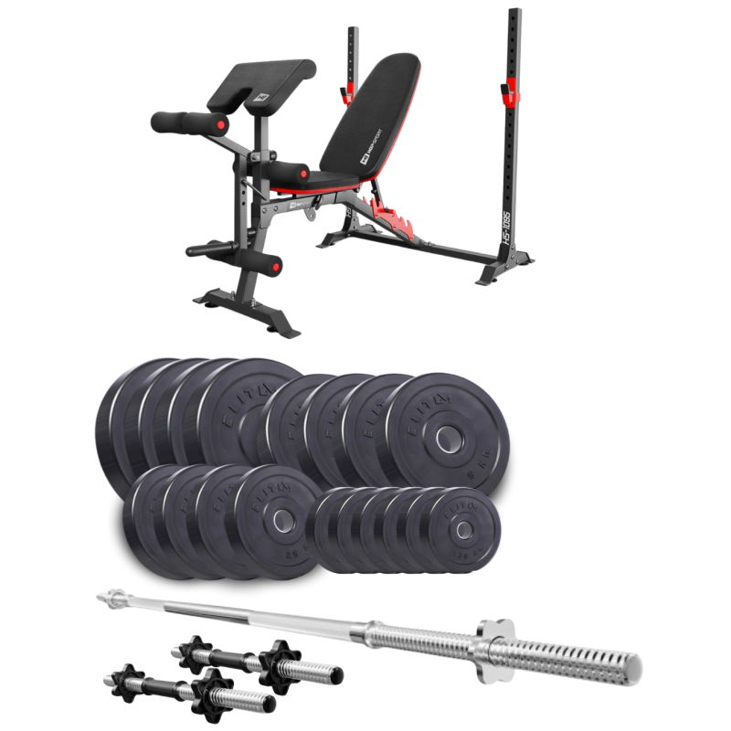 Набор Elitum Titan 89кг со скамьей HS-1095, штангой и гантелями