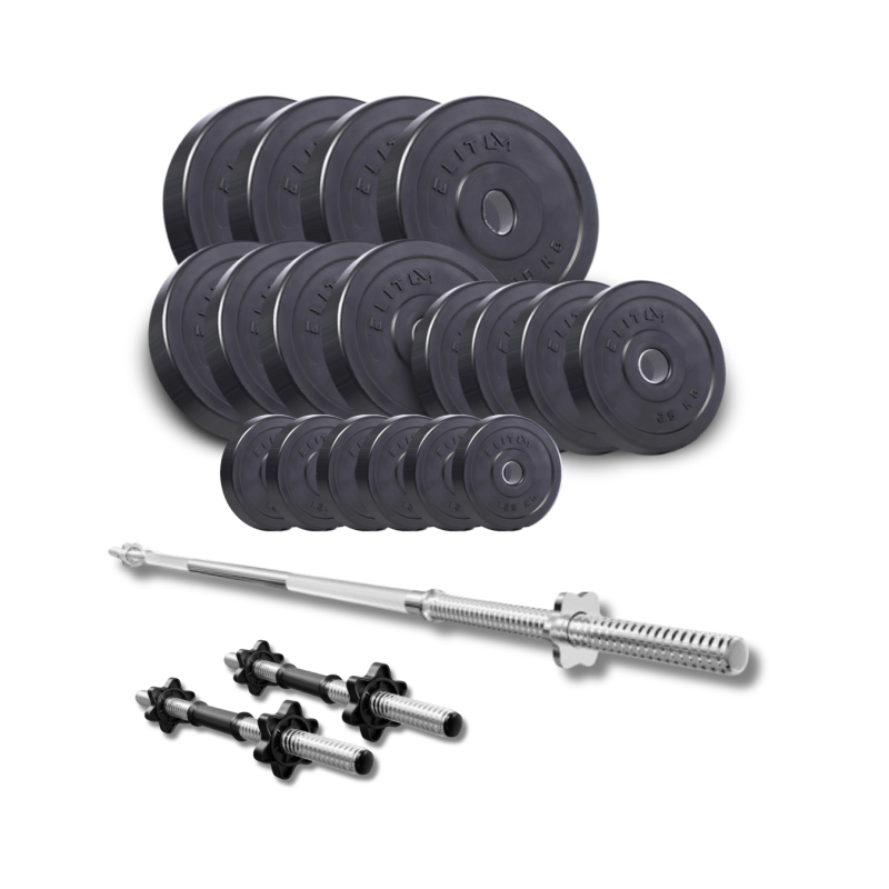 Набор штанги и гантелей Elitum Titan 89кг - это универсальное спортивное оборудование, идеально подходящее для полноценных силовых тренировок дома. Комплектация подобрана с учетом рекомендаций опытных тренеров, что обеспечивает оптимальное сочетание веса, типов грифов и количества дисков. Этот набор позволяет эффективно тренировать все основные группы мышц, предоставляя им необходимую нагрузку для достижения результатов. С Elitum Titan вы сможете улучшить свою физическую форму, нарастить мышечную массу, повысить выносливость и укрепить сердечно-сосудистую систему.