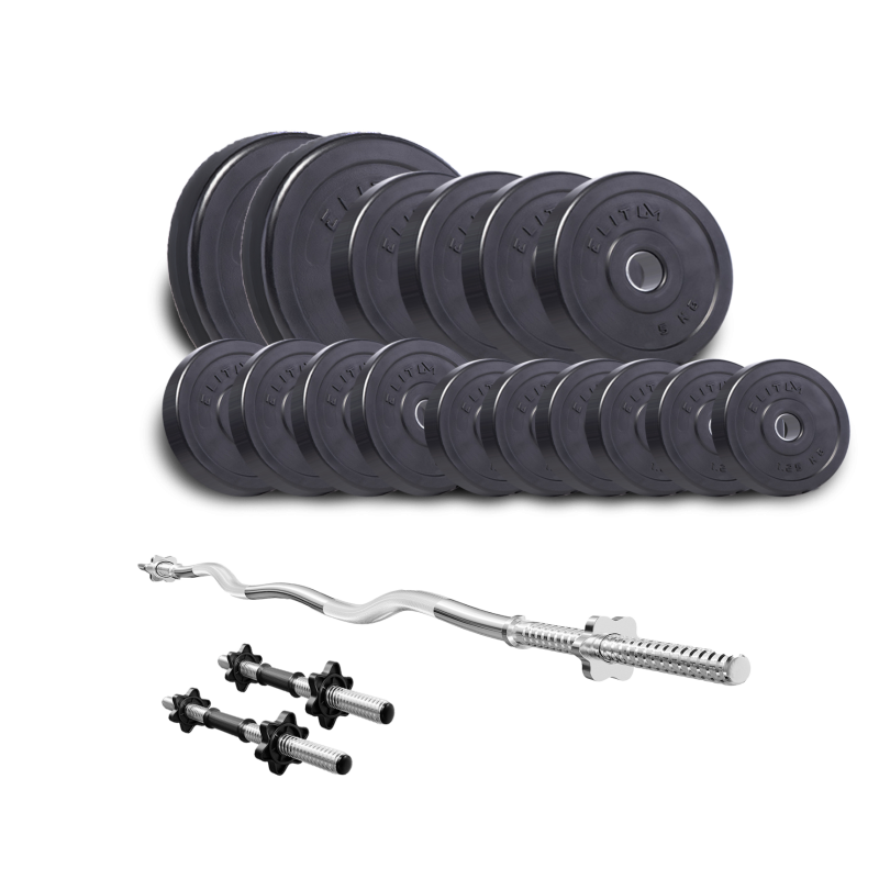 Набор состоит из дисков, покрытых ABS-пластиком, прямого, W-образного грифа и двух гантельных грифов. Высокое качество изготовления и долговечность деталей гарантирует, что ваши тренировки с данным набором будут проходить комфортно, безопасно и с максимальной пользой.