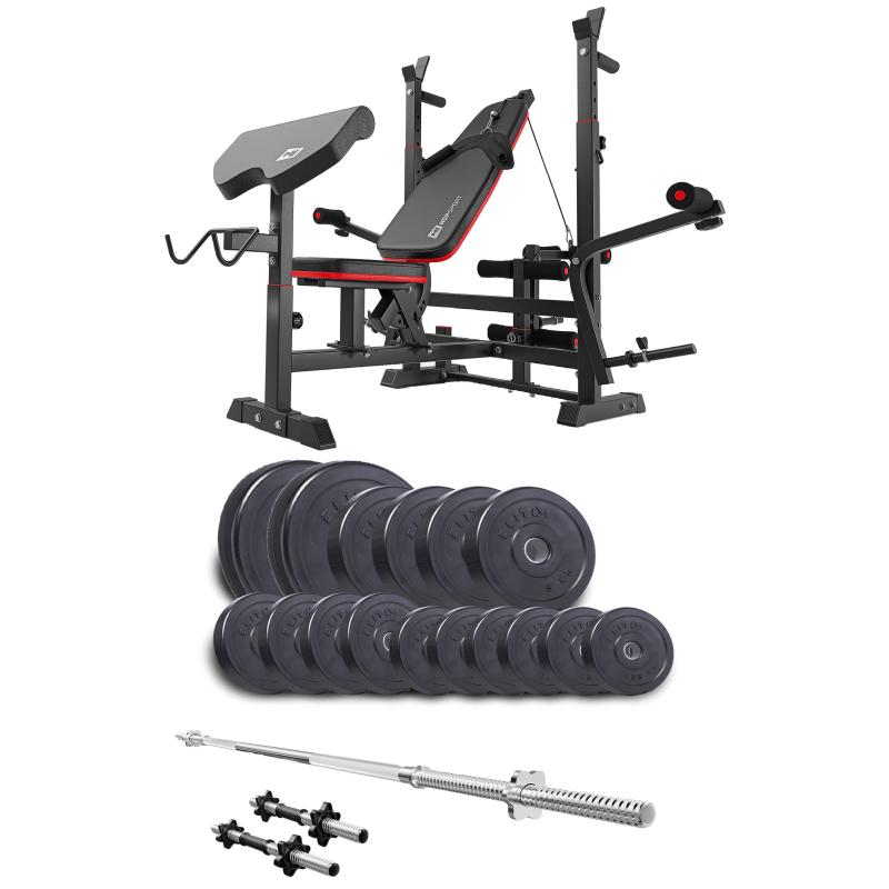Набор Elitum Titan 68кг со скамьей HS-1075 Pro, штангой и гантелями