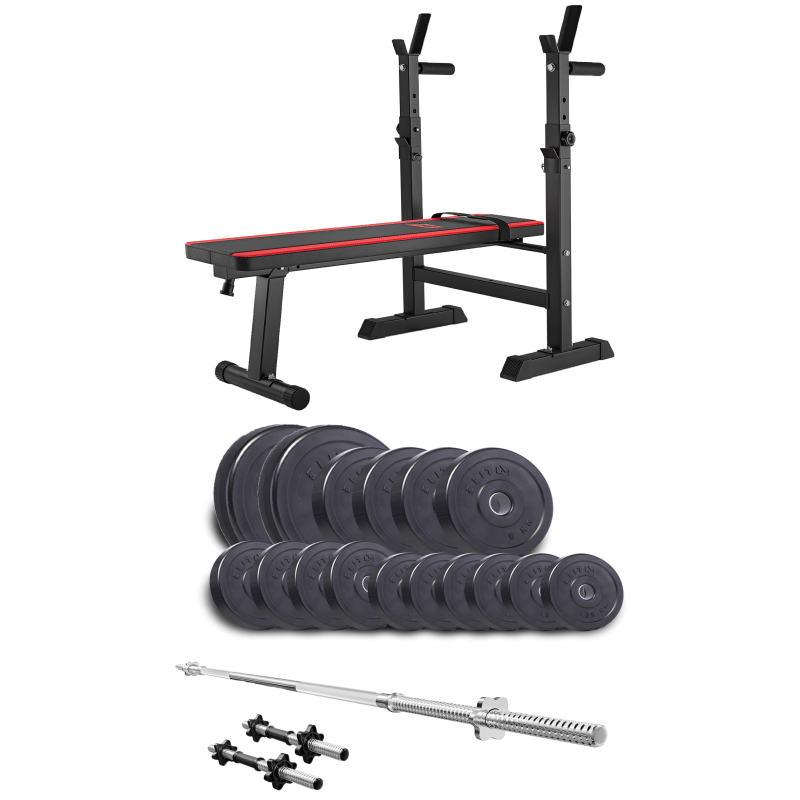 Набор Elitum Titan 68кг со скамьей HS-1080, штангой и гантелями