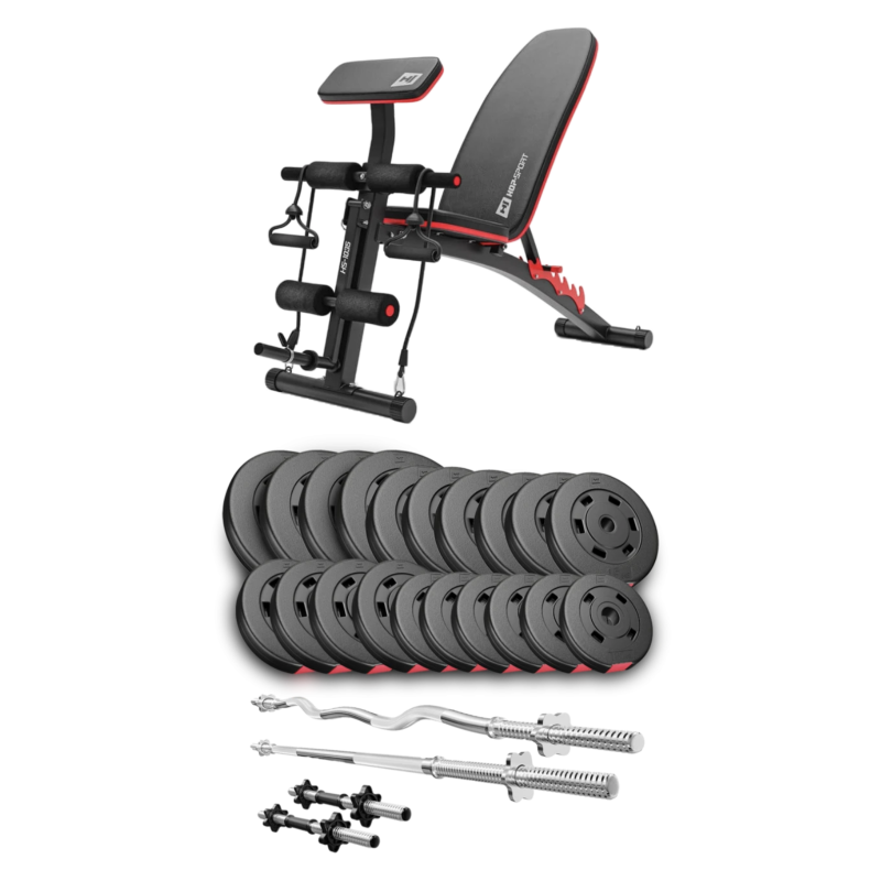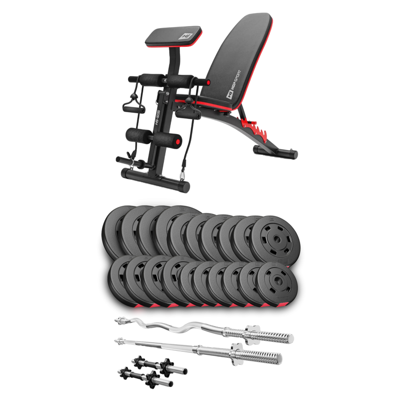 Набор Premium 105кг со штангами и скамьей HS-1035 - идеально подобранный комплект с функциональной лавкой и наилучшим сочетанием количества и веса дисков, чтобы организовать дома полноценный спортзал для силовых тренировок.