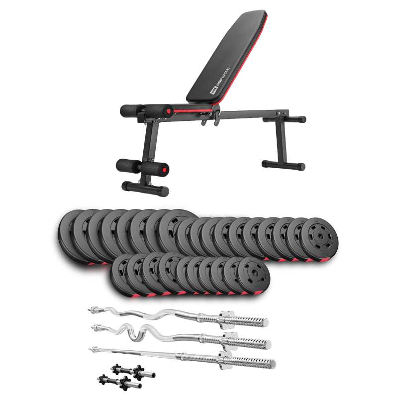 Набор Premium 173кг со штангами и скамьей HS-1010 Pro - идеально подобранный комплект с функциональной лавкой и наилучшим сочетанием количества и веса дисков, чтобы организовать дома полноценный спортзал для силовых тренировок.