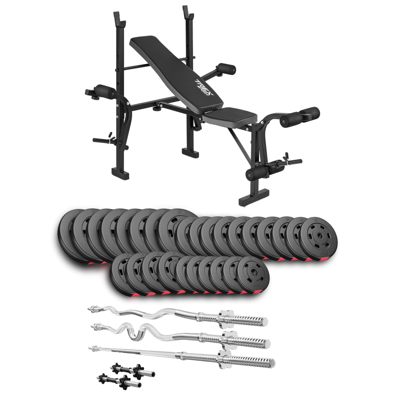 Набор Premium 173кг со штангами и скамьей TX-055 - идеально подобранный комплект с функциональной лавкой и наилучшим сочетанием количества и веса дисков, чтобы организовать дома полноценный спортзал для силовых тренировок.