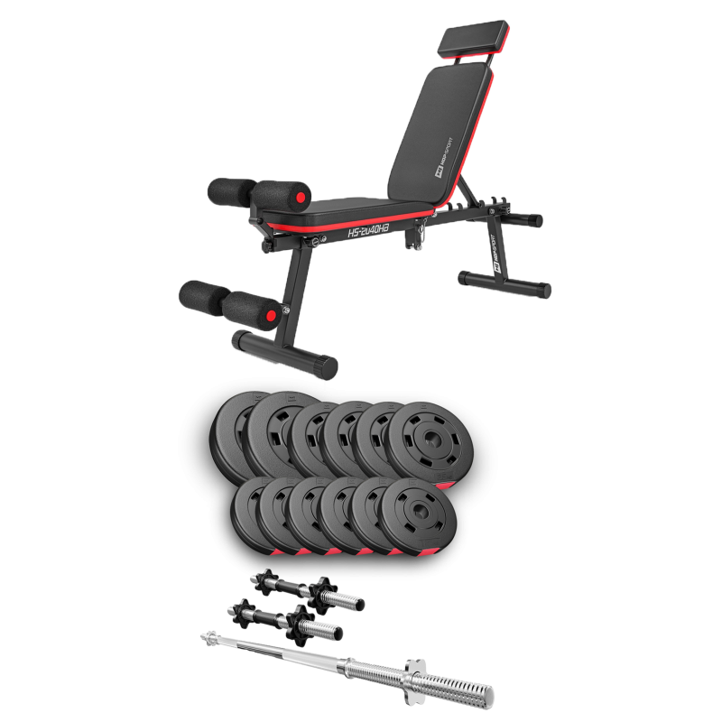 Набор Premium 38кг со штангами и скамьей HS-2040 HB - идеально подобранный комплект с функциональной лавкой и наилучшим сочетанием количества и веса дисков, чтобы организовать дома полноценный спортзал для силовых тренировок.